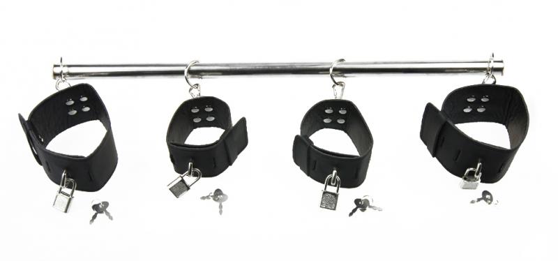 Description : Barre de bondage en acier inoxydable avec attaches poignets et chevilles munies de cadenas Cette barre d'écartement apportera à vos jeux de domination/soumission une nouvelle tournure plus excitante encore... Couleurs des attaches reglables: noires ou rouges taille de la barre: 48 cm