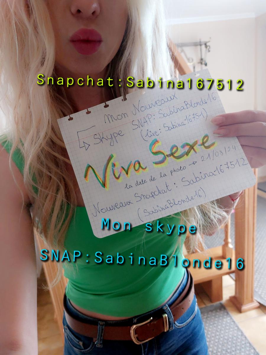 Description : Bonjour !Je suis une belle blond de 1,67cm avec des belle forme 55kg et une jolie poitrine 95 B. 🙈 Je fait des plusieurs type de show en direct cam2cam sur Skype. J'ai aussi un Snap comme ça vous voyez que je ne suis pas un fake. Tout mes services sont bien PAYANTE 💰. 👙 sous-vêtements, 🍑 nue, ❤ caresse, 🍆 gode , 😼 domination, 🦶 fetich, 💃 dance/strip et plus... Il y as dans mes show : ✅ Cam ✅ Song ✅ Micro Pour plus d'infos ajoutez moi sur SKYPE live:sabina16751 ou écrivez un message sur mon SNAP sabinablond16 PS: je ne fais pas de réel et merci pour respecter cette annonce. A bientôt 💋
