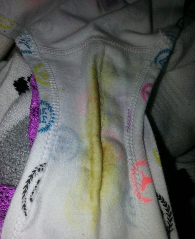 Description : Femme cede Culottes souillees .. Mouille pipi caca pertes Blanches