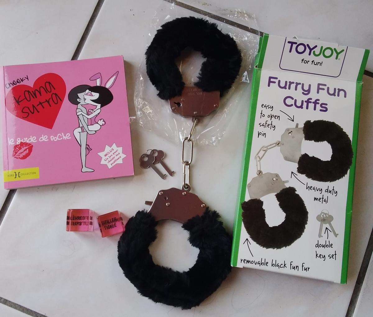 Description : Jouets coquins Lot comprenant 1livre kamasutra, 1 paire de dé coquin et 1 paire de menottes avec fourrure et clés neuve 8€ (Ceci n’est Pas une annonce pour un plan cul ou faire des rencontres, merci)
