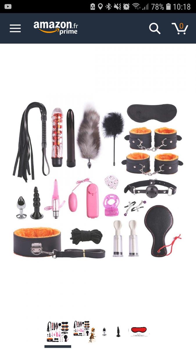 Description : Salut Je vends mes sextoys parce que je renouvelle mes jouets . Demander plus de photo si vous voulez Très peu servi 1 gode ceinture double penetration 2 petits godes vibrant à pile 1 plug anal à ventouse 1 plug avec queue 1 ensemble de menotte cheville et poignet, bâillon boule,corde ..... Le reste sur les photos Envoi compris dans le prix par mondial relay